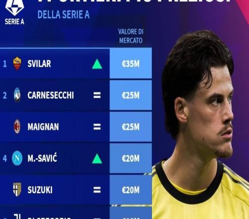 北京時間12月25日,在更新了意甲球員的身價之后,德轉列出了此次更新后意甲門將身價前10,羅馬的斯維拉爾以3500萬...