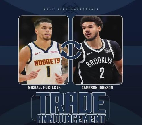 今夏休賽期,掘金將小波特和一個32年無保護(hù)首輪簽送至籃網(wǎng),換回卡梅倫-約翰遜;本賽季在籃網(wǎng)的小波特,“因禍得福”打出生涯巔峰一季,至今場均貢獻(xiàn)25.7分7.3板3.2助,場均以40.1%命中率扔進(jìn)3.7記三分球。