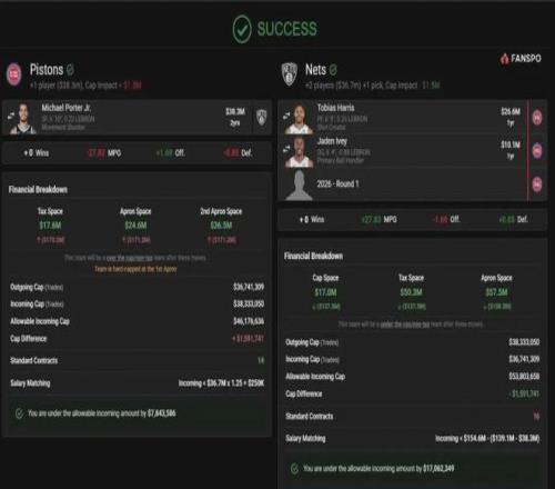 美媒建議活塞可以就小波特,向籃網(wǎng)報(bào)價哈里斯(2663萬美元,合同年)+艾維(1011萬美元,合同年)+一個選秀權(quán),也許便能大功告成。