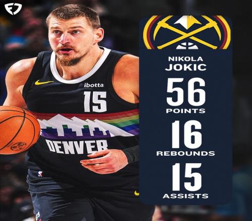 56分、16個(gè)籃板、15次助攻,外加2記蓋帽,約基奇用一份電子游戲里都難以想象的超級(jí)數(shù)據(jù),獻(xiàn)上了圣誕大戰(zhàn)歷史上最偉大的個(gè)人表演之一,并攜手賈馬爾·穆雷,創(chuàng)造了前無(wú)古人的雙人組紀(jì)錄。