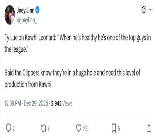 4連勝不僅是聯(lián)盟現(xiàn)存最長連勝,也讓快船隊戰(zhàn)績提升至10勝21負,距離身前第12名的獨行俠1個勝場,與第10名開拓者之間的差距保持在2.5個勝場,而沖擊附加賽名額也是快船隊陷入困境后務實的賽季目標。