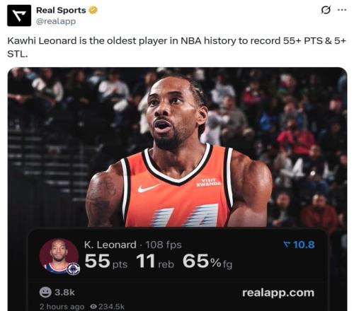 狂轟55分11板5斷3帽,小卡連創(chuàng)紀錄成NBA歷史首人!快船輕取東部第一豪取現(xiàn)存最長4連勝。