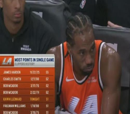 到了下半場,倫納德繼續(xù)發(fā)力,他在第三節(jié)單節(jié)狂砍26分5籃板,命中率高達(dá)75%,三節(jié)比賽就拿到了51分。