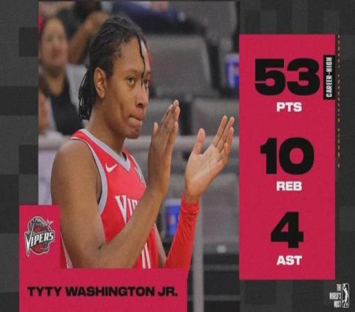 華盛頓的生涯高光時刻,也是在NBA發(fā)展聯(lián)盟,他曾單場轟下53分10籃板4助攻的數(shù)據(jù),還是很有得分爆發(fā)力的。