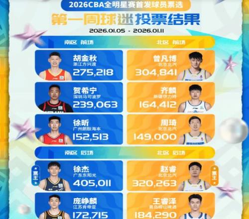 2026CBA全明星賽,首周投票具體情況如下: