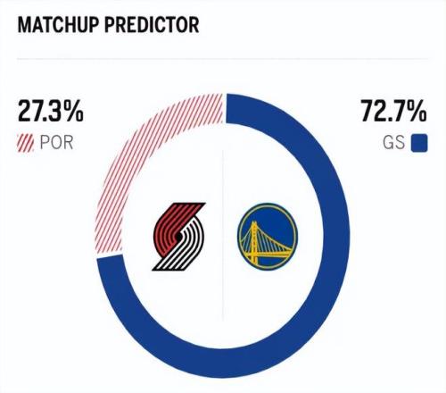 兩隊(duì)本賽季已經(jīng)交手三次,開拓者三戰(zhàn)全部取勝,他們的“超級大個子陣容”顯然非常克制勇士。賽前,美媒ESPN對本場比賽進(jìn)行了勝率預(yù)測,開拓者的勝率僅有27.3%,劣勢明顯,勇士隊(duì)的勝率則高達(dá)72.7%。