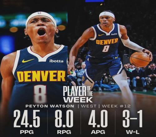 沃特森能夠榮膺西部周最佳,估計(jì)很多球迷都沒(méi)想到。在約老師長(zhǎng)期缺陣的情況下,掘金還能保住西部第三,沃特森功不可沒(méi)。這是沃特森生涯第一次榮膺周最佳,他也成為約基奇和穆雷之后,本賽季第三個(gè)拿到周最佳的掘金球員。