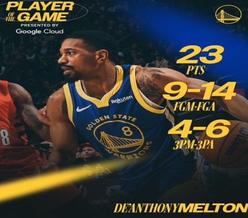 全場比賽,庫里25分鐘9中2拿7分10助攻,全隊4人上雙,梅爾頓18分鐘,14中9+三分6中4拿到23分2籃板1助攻最出色,巴特勒16+6+5,這是勇士一場酣暢淋漓的大勝。