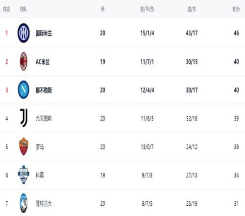 意甲奪冠熱門誕生:狂攬46分,高居榜首,甩開AC米蘭6分