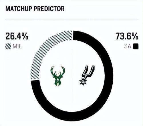 賽前,美媒ESPN對(duì)本場(chǎng)比賽進(jìn)行了勝率預(yù)測(cè),雄鹿隊(duì)勝率僅有26.4%,依舊不被看好,馬刺隊(duì)勝率則高達(dá)73.6% ,顯然美媒都看好馬刺本場(chǎng)能夠打破“低迷魔咒” 。