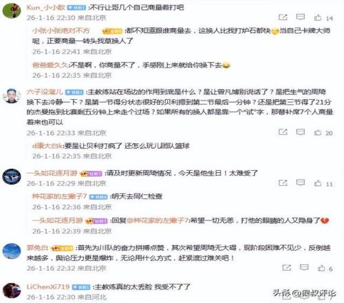 有球迷點評說道:主教練站在場邊的作用到底是什么?是讓曾凡博別說話了?是把生氣的周琦換下去冷靜一下?是第一節(jié)得分狀態(tài)很好的貝利摁到第二節(jié)最后一分鐘?還是把第三節(jié)得了21分的杰曼拖到比賽剩五分鐘上來走個過場?如果所有的換人都是靠一個“試”字,那替補席7個人商量著來也可以。