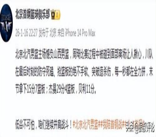 北京時間1月16日,CBA常規(guī)賽繼續(xù)開打,北京84-90不敵山西,過去4場比賽,北京輸了3場,而第四節(jié)崩盤引發(fā)外界的熱議,大量的球迷沖到北京社媒評論區(qū)表達不滿。